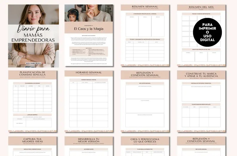 El diario está completamente en español, pensado para mamás emprendedoras hispanohablantes.